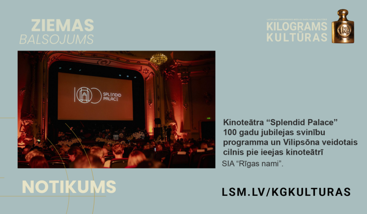 Kategorijā “Notikums” izvirzīta arī kinoteātra “Splendid Palace” 100 gadu jubilejas svinību programma un Vilipsōna veidotais cilnis pie ieejas kinoteātrī.