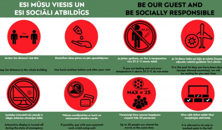 * īpaši marķētām sēdvietām, ievērojot distanci (ja nāksiet divatā vai esat no vienas mājsaimniecības - varēsiet sēdēt kopā);