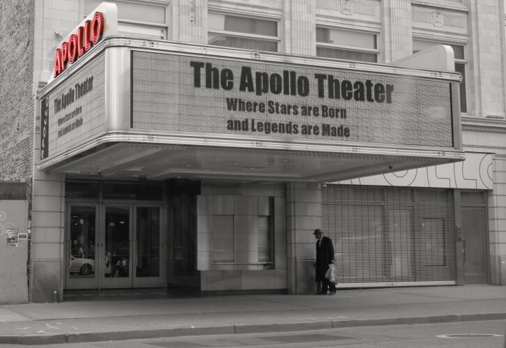 Filmā Apollo teātris (The Apollo, 2019, režisors Roger Ross Williams) stāstīts par slavenā Ņujorkas Apollo teātra vēsturi un mūsdienu notikumiem. Tie ir dokumentāli arhīva kadri, mūzika, dejas, komēdiju šovi – viss, kas raksturo leģendāro teātri. Intervijas ar māksliniekiem un īpašniekiem, kas vairāk kā 85 gadu garajā Apollo teātra vēsturē ir bijuši saistīti ar šo namu. Filmā atainota melnādaino mākslinieku cīņa agrākajos laikos un mūsdienās. Apollo ir ietekmējis ne vien Ņujorkas un ASV, bet visas pasaules mūzikas vēsturi, turklāt tā ir vieta, kura kalpojusi kā mājvieta daudziem šobrīd starptautiski slaveniem māksliniekiem. Piemēram, Aretai Frenklinai (Aretha Franklin), Ellai Fidžeraldai (Ella Fitzgerald), Daienai Rosai un grupai The Supremes (Diana Ross & The Supremes), Stīvijam Vonderam (Stevie Wonder), grupai The Jackon 5, Bilijai Holidejai (Billie Holiday), Džimijam Hendriksam (Jimi Hendrix) un citiem.